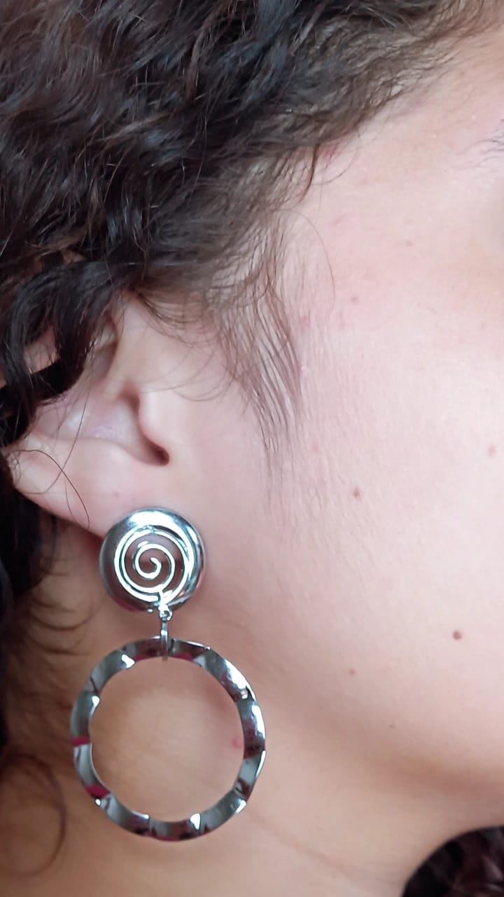 🔹 Argola grande texturizada: Superfície martelada que reflete a luz com leveza e dá um toque artesanal à peça.