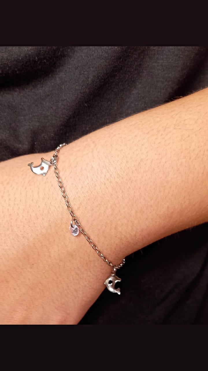 Apresente um toque delicado e moderno com a pulseira golfinhos em aço inox da marca. Esta joia combina resistência e estilo em um design com pequenos golfinhos pendurados que proporcionam movimento e charme ao acessório. Feita em aço inox de alta qualidade, a pulseira oferece durabilidade e resistência ao desgaste diário, além de não escurecer com o tempo, mantendo o brilho original por muito mais tempo. O acabamento hipoalergênico é ideal para peles sensíveis, prevenindo irritações. A corrente fina possui comprimento ajustável para garantir o melhor encaixe no pulso, valorizando o visual com um detalhe discreto e elegante. Com esta pulseira você pode elevar qualquer look, seja para o dia a dia ou ocasiões especiais, trazendo uma sensação de leveza e conexão com a natureza marinha.